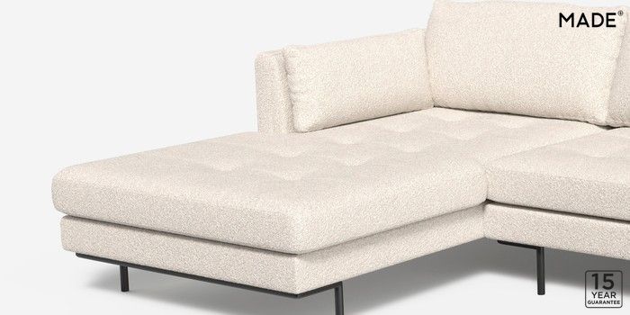 7.2.4 Harlow by Made Medium Sofa Chaise - Left Hand Soft Touch Boucle Off White Skinny - Black | Made Click here to use our website with more accessibility support, for example screen readers