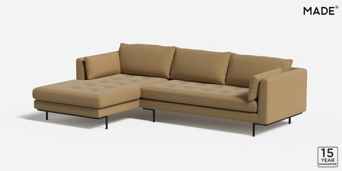 6.12.1 Harlow by Made Medium Sofa Chaise - Left Hand Textured Slub Weave Caramel Natural Skinny - Black | Made Click here to use our website with more accessibility support, for example screen readers