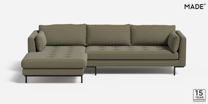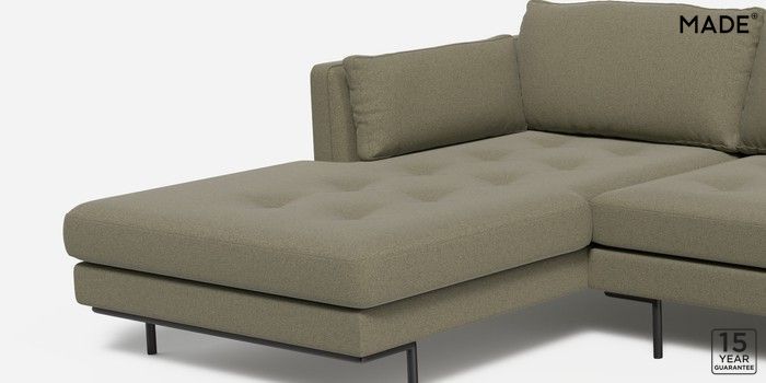 7.2.10 Harlow by Made Medium Sofa Chaise - Left Hand Textured Slub Weave Soft Olive Green Skinny - Black | Made Click here to use our website with more accessibility support, for example screen readers