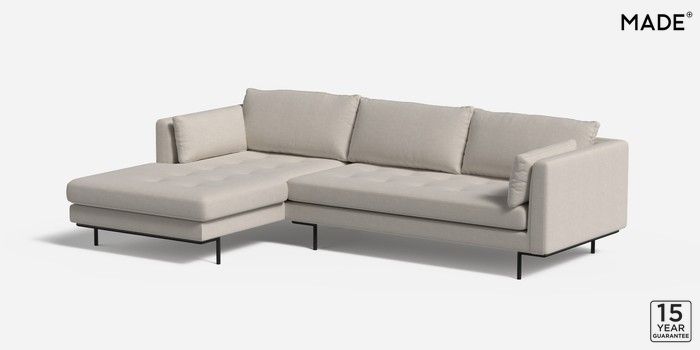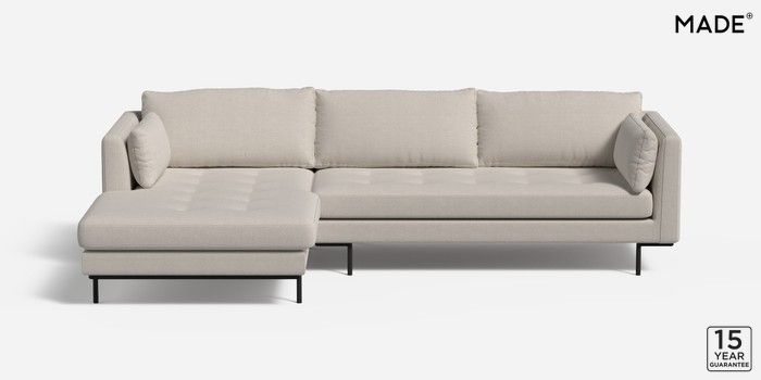 6.12.1 Harlow by Made Medium Sofa Chaise - Left Hand Textured Woven Silver Grey Skinny - Black | Made Click here to use our website with more accessibility support, for example screen readers