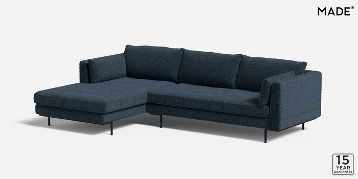 6.12.1 Harlow by Made Medium Sofa Chaise - Left Hand Tonal Boucle Marl Navy Blue Skinny - Black | Made Click here to use our website with more accessibility support, for example screen readers