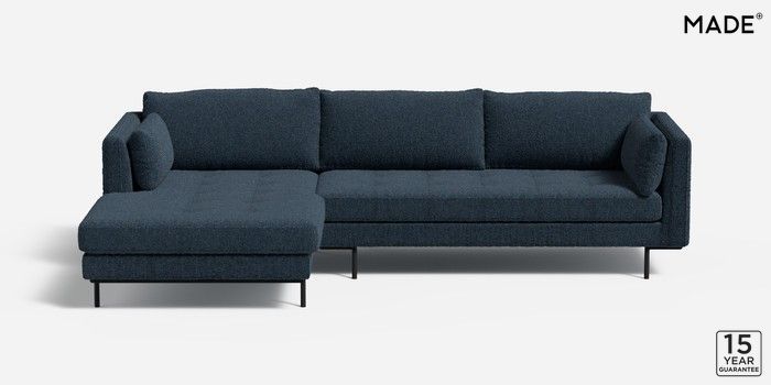 7.2.10 Harlow by Made Medium Sofa Chaise - Left Hand Tonal Boucle Marl Navy Blue Skinny - Black | Made Click here to use our website with more accessibility support, for example screen readers