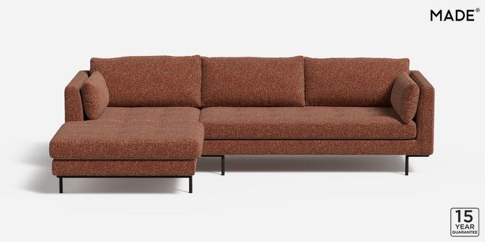 7.2.10 Harlow by Made Medium Sofa Chaise - Left Hand Tonal Boucle Maroon Red and Light Caramel Skinny - Black | Made Click here to use our website with more accessibility support, for example screen readers