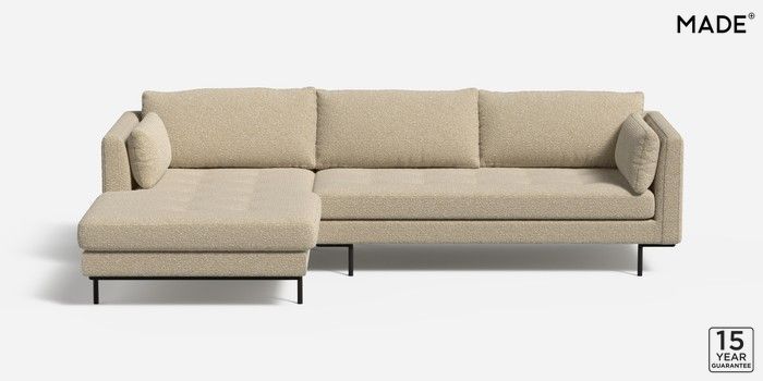 7.2.10 Harlow by Made Medium Sofa Chaise - Left Hand Tonal Boucle Natural Oatmeal Skinny - Black | Made Click here to use our website with more accessibility support, for example screen readers