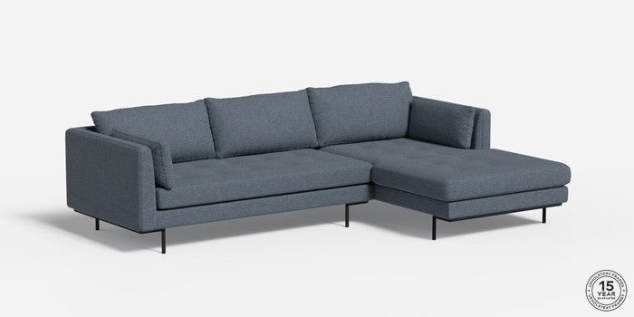 6.12.1 Harlow by Made Medium Sofa Chaise - Right Hand Boucle Textured Weave Slate Blue Skinny - Black | Made Click here to use our website with more accessibility support, for example screen readers