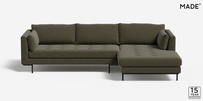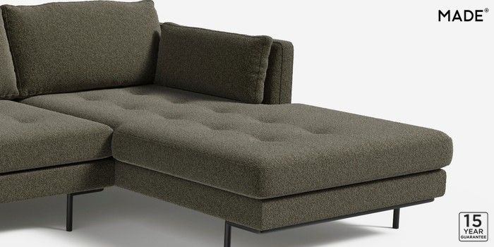 6.12.1 Harlow by Made Medium Sofa Chaise - Right Hand Soft Touch Boucle Forest Green Skinny - Black | Made Click here to use our website with more accessibility support, for example screen readers