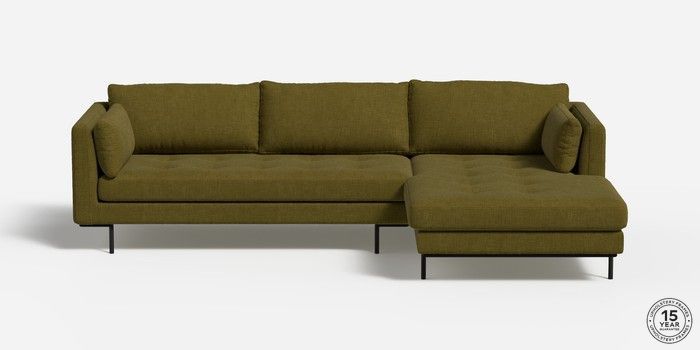 6.12.1 Harlow by Made Medium Sofa Chaise - Right Hand Etched Chenille Moss Green Skinny - Black | Made Click here to use our website with more accessibility support, for example screen readers