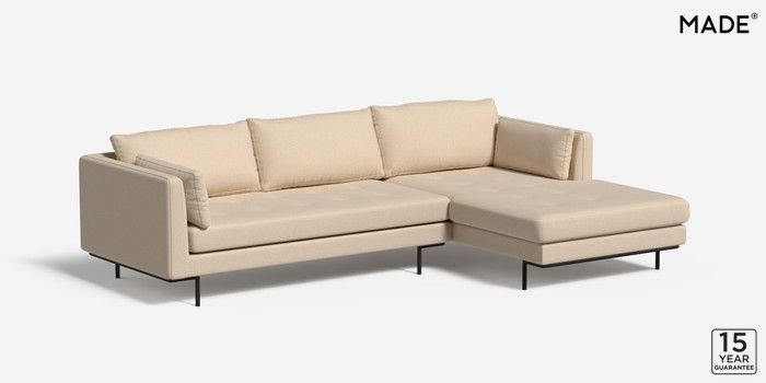 6.12.1 Harlow by Made Medium Sofa Chaise - Right Hand Made Weave Light Stone Natural Skinny - Black | Made Click here to use our website with more accessibility support, for example screen readers