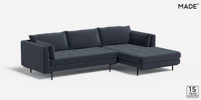 6.12.1 Harlow by Made Medium Sofa Chaise - Right Hand Matt Corduroy Midnight Blue Skinny - Black | Made Click here to use our website with more accessibility support, for example screen readers