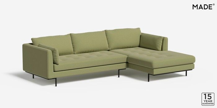 6.12.1 Harlow by Made Medium Sofa Chaise - Right Hand Soft Chenille Easy Clean Green Tea Skinny - Black | Made Click here to use our website with more accessibility support, for example screen readers