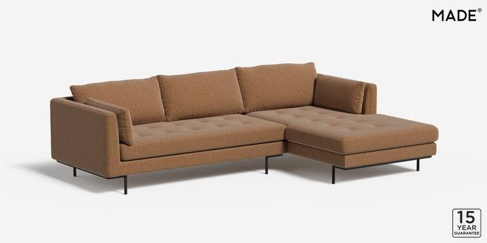 6.12.1 Harlow by Made Medium Sofa Chaise - Right Hand Soft Touch Boucle Caramel Natural Skinny - Black | Made Click here to use our website with more accessibility support, for example screen readers