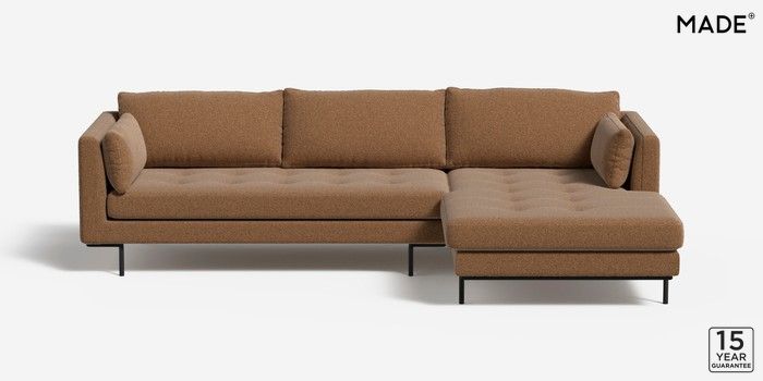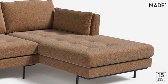 7.2.4 Harlow by Made Medium Sofa Chaise - Right Hand Soft Touch Boucle Caramel Natural Skinny - Black | Made Click here to use our website with more accessibility support, for example screen readers