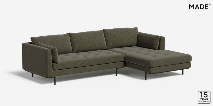 6.12.1 Harlow by Made Medium Sofa Chaise - Right Hand Soft Touch Boucle Forest Green Skinny - Black | Made Click here to use our website with more accessibility support, for example screen readers
