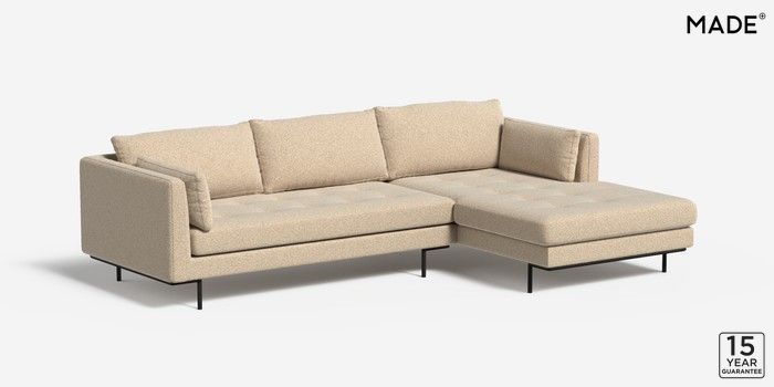 6.12.1 Harlow by Made Medium Sofa Chaise - Right Hand Soft Touch Boucle Natural Linen Skinny - Black | Made Click here to use our website with more accessibility support, for example screen readers