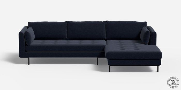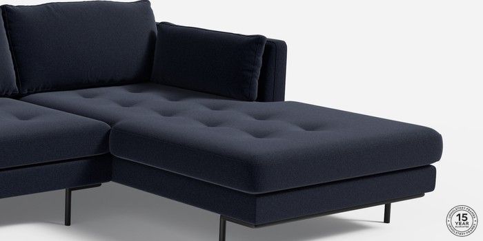 6.12.1 Harlow by Made Medium Sofa Chaise - Right Hand Soft Touch Boucle Navy Blue Skinny - Black | Made Click here to use our website with more accessibility support, for example screen readers