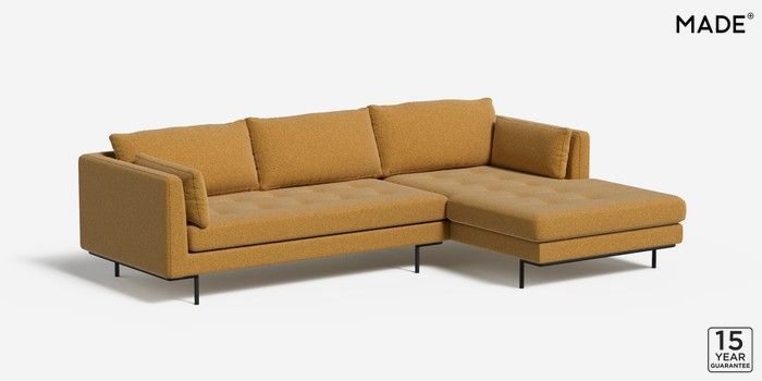 6.12.1 Harlow by Made Medium Sofa Chaise - Right Hand Soft Touch Boucle Ochre Yellow Skinny - Black | Made Click here to use our website with more accessibility support, for example screen readers