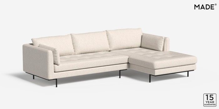 6.12.1 Harlow by Made Medium Sofa Chaise - Right Hand Soft Touch Boucle Off White Skinny - Black | Made Click here to use our website with more accessibility support, for example screen readers