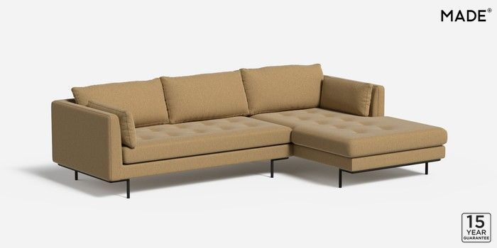 6.12.1 Harlow by Made Medium Sofa Chaise - Right Hand Textured Slub Weave Caramel Natural Skinny - Black | Made Click here to use our website with more accessibility support, for example screen readers