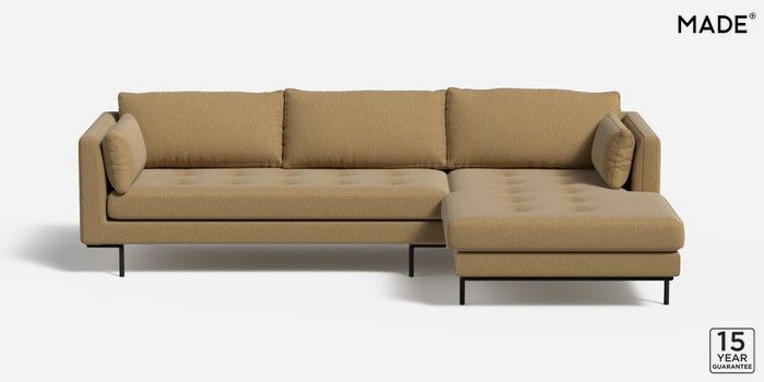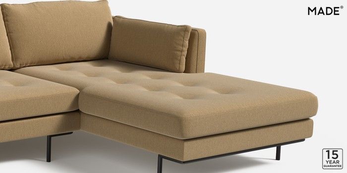 7.2.10 Harlow by Made Medium Sofa Chaise - Right Hand Textured Slub Weave Caramel Natural Skinny - Black | Made Click here to use our website with more accessibility support, for example screen readers