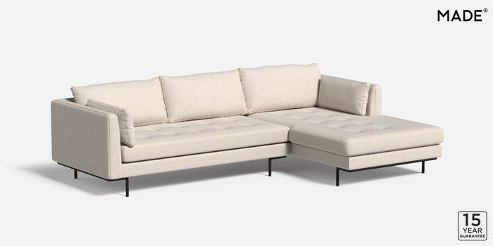 6.12.1 Harlow by Made Medium Sofa Chaise - Right Hand Textured Slub Weave Light Natural Skinny - Black | Made Click here to use our website with more accessibility support, for example screen readers