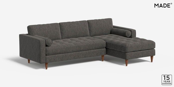 6.12.1 Harlow by Made Medium Sofa Chaise - Right Hand Textured Woven Black Skinny - Black | Made Click here to use our website with more accessibility support, for example screen readers