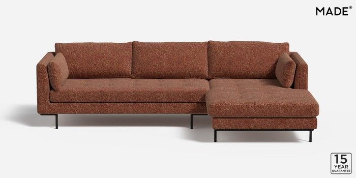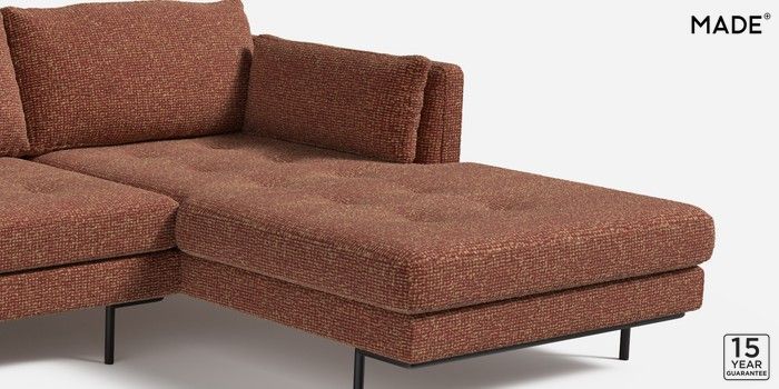 7.2.10 Harlow by Made Medium Sofa Chaise - Right Hand Tonal Boucle Maroon Red and Light Caramel Skinny - Black | Made Click here to use our website with more accessibility support, for example screen readers