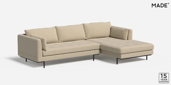 6.12.1 Harlow by Made Medium Sofa Chaise - Right Hand Tonal Boucle Natural Oatmeal Skinny - Black | Made Click here to use our website with more accessibility support, for example screen readers