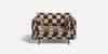 This large-scale checkerboard design is bold and dramatic in texture and scale. The embroidered boucle texture on the coloured blocks.