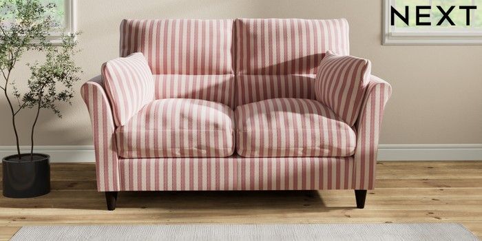 7.2.10 Hartley Highback Relaxed Sit 2 Seater Sofa Bold Chenille Stripe Dark Pink Low Conical - Dark | Made Click here to use our website with more accessibility support, for example screen readers
