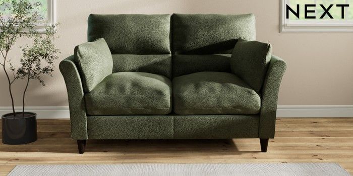 7.2.10 Hartley Highback Relaxed Sit 2 Seater Sofa Boucle Chenille Dark Moss Green Low Conical - Dark | Made Click here to use our website with more accessibility support, for example screen readers