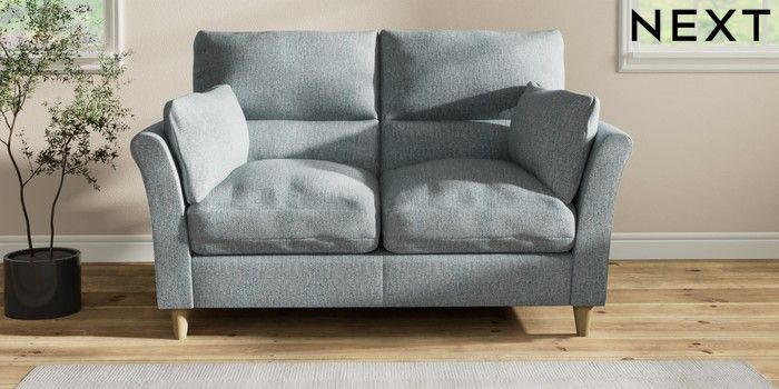 7.2.10 Hartley Highback Relaxed Sit 2 Seater Sofa Chunky Weave Mid Blue Low Conical - Light | Made Click here to use our website with more accessibility support, for example screen readers