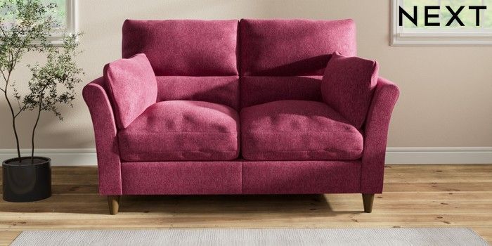 7.2.10 Hartley Highback Relaxed Sit 2 Seater Sofa Cotswold Chenille Dark Raspberry Pink Low Conical - Mid | Made Click here to use our website with more accessibility support, for example screen readers