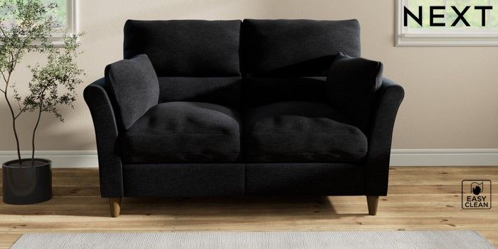 7.2.10 Hartley Highback Relaxed Sit 2 Seater Sofa Fine Chenille Easy Clean Black Low Conical - Mid | Made Click here to use our website with more accessibility support, for example screen readers