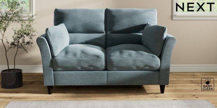 7.2.10 Hartley Highback Relaxed Sit 2 Seater Sofa Fine Chenille Easy Clean Mid Blue Low Conical - Dark | Made Click here to use our website with more accessibility support, for example screen readers
