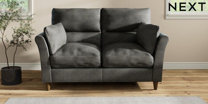 7.2.10 Hartley Highback Relaxed Sit 2 Seater Sofa Monza Faux Leather Easy Clean Dark Grey Low Conical - Mid | Made Click here to use our website with more accessibility support, for example screen readers