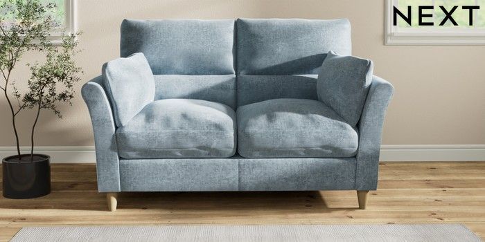 7.2.10 Hartley Highback Relaxed Sit 2 Seater Sofa Plush Chenille Light Blue Low Conical - Light | Made Click here to use our website with more accessibility support, for example screen readers
