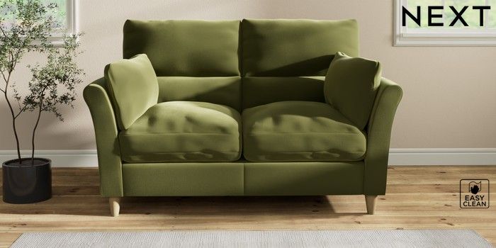 7.2.10 Hartley Highback Relaxed Sit 2 Seater Sofa Plush Velvet Easy Clean Mid Olive Green Low Conical - Light | Made Click here to use our website with more accessibility support, for example screen readers