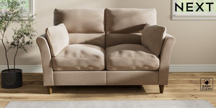 7.2.10 Hartley Highback Relaxed Sit 2 Seater Sofa Tweedy Blend Easy Clean Light Dove Natural Low Conical - Mid | Made Click here to use our website with more accessibility support, for example screen readers