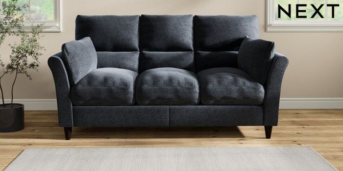 7.2.10 Hartley Highback Relaxed Sit 3 Cushion 3 Seater Sofa Boucle Chenille Dark Slate Blue Low Conical - Dark | Made Click here to use our website with more accessibility support, for example screen readers