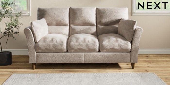 7.2.10 Hartley Highback Relaxed Sit 3 Cushion 3 Seater Sofa Boucle Chenille Light Natural Low Conical - Mid | Made Click here to use our website with more accessibility support, for example screen readers