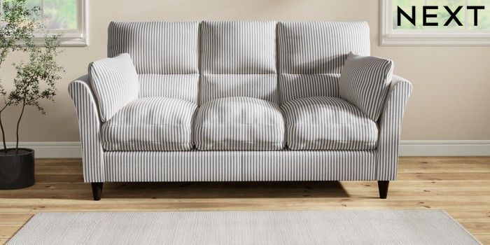 7.2.10 Hartley Highback Relaxed Sit 3 Cushion 3 Seater Sofa Chenille Stripe Slate Blue Low Conical - Dark | Made Click here to use our website with more accessibility support, for example screen readers