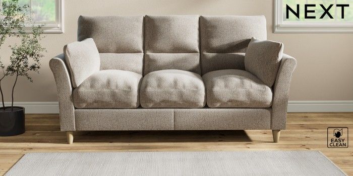 7.2.10 Hartley Highback Relaxed Sit 3 Cushion 3 Seater Sofa Chunky Boucle Easy Clean Dove Low Conical - Light | Made Click here to use our website with more accessibility support, for example screen readers