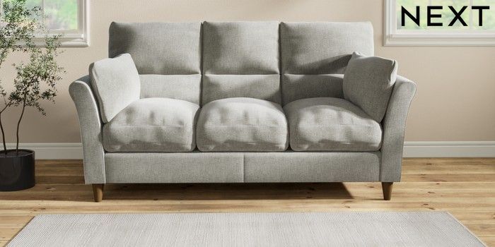 7.2.10 Hartley Highback Relaxed Sit 3 Cushion 3 Seater Sofa Chunky Chenille Light Grey Low Conical - Mid | Made Click here to use our website with more accessibility support, for example screen readers