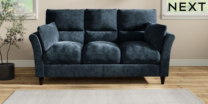 7.2.10 Hartley Highback Relaxed Sit 3 Cushion 3 Seater Sofa Distressed Velour Midnight Blue Low Conical - Dark | Made Click here to use our website with more accessibility support, for example screen readers
