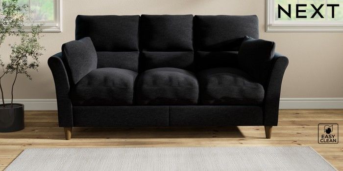 7.2.10 Hartley Highback Relaxed Sit 3 Cushion 3 Seater Sofa Fine Chenille Easy Clean Black Low Conical - Mid | Made Click here to use our website with more accessibility support, for example screen readers