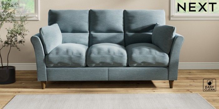 7.2.10 Hartley Highback Relaxed Sit 3 Cushion 3 Seater Sofa Fine Chenille Easy Clean Mid Blue Low Conical - Mid | Made Click here to use our website with more accessibility support, for example screen readers
