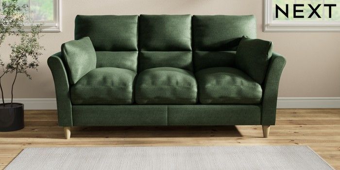 7.2.10 Hartley Highback Relaxed Sit 3 Cushion 3 Seater Sofa Luxe Chenille Dark Green Low Conical - Light | Made Click here to use our website with more accessibility support, for example screen readers