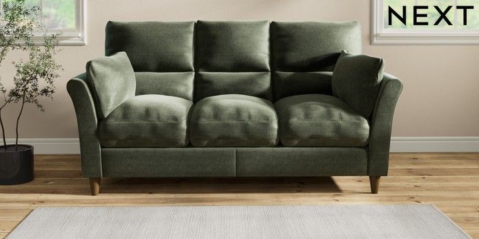 7.2.10 Hartley Highback Relaxed Sit 3 Cushion 3 Seater Sofa Luxe Chenille Mid Green Low Conical - Mid | Made Click here to use our website with more accessibility support, for example screen readers