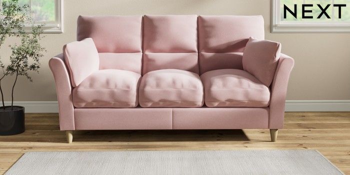 7.2.10 Hartley Highback Relaxed Sit 3 Cushion 3 Seater Sofa Natural Mix Light Rose Pink Low Conical - Light | Made Click here to use our website with more accessibility support, for example screen readers