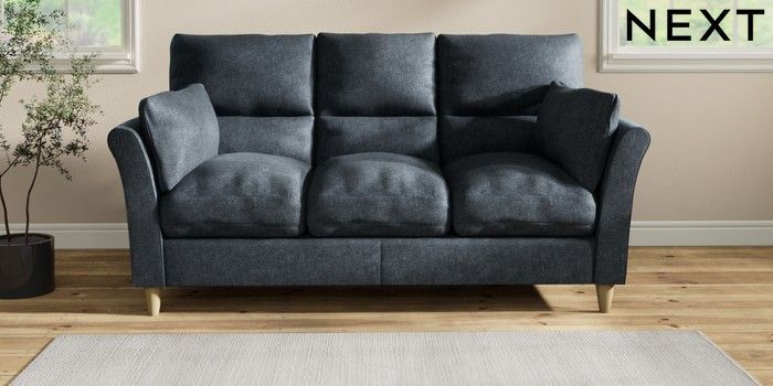 7.2.10 Hartley Highback Relaxed Sit 3 Cushion 3 Seater Sofa Plush Chenille Slate Blue Low Conical - Light | Made Click here to use our website with more accessibility support, for example screen readers